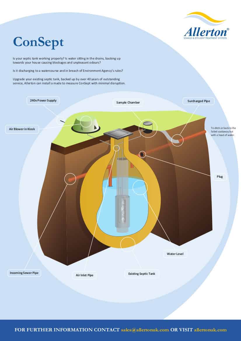 - The Allerton ConSept utilises your existing septic tank so there’s no need for heavy diggers and new units. Plus, it’s quick to install which saves you time, money and disruption.